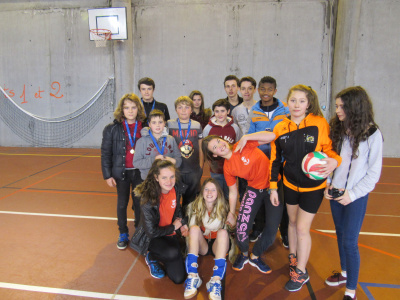 Des élèves du collège ont participé au championnat départemental de volley-ball. A Quimper mercredi 2 mars 2016. Les Minimes filles terminent 4es, les minimes garçons montent sur la 3e place du podium.