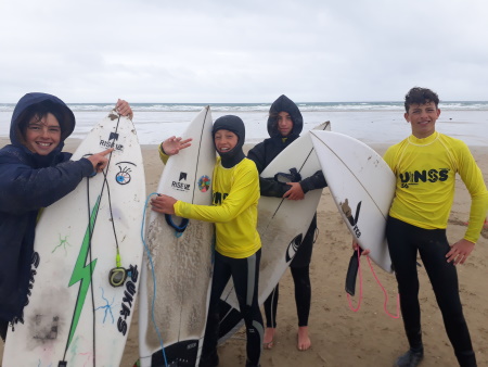 Mercredi 10 novembre 2021, 12 élèves du collège Paul Langevin se sont rendus sur la plage des Blancs Sablons au Conquet. Ils y ont disputé les championnats départementaux de surf.