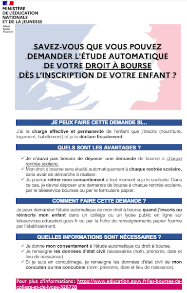 La campagne de bourses de collège 2023 a débuté le 1er septembre et s’achèvera le 19 octobre 2023. Un simulateur est accessible ICI.