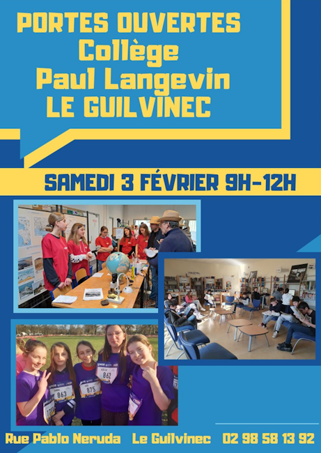 Le collège Paul Langevin organise sa matinée « Portes Ouvertes » le samedi 3 février 2024 de 9h à 12h.